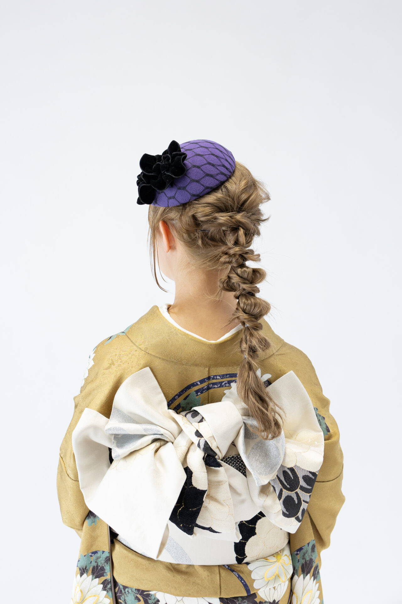 和と洋を自由にミックスして、自分らしさを表現したお嬢さんのフォト成人式。帽子のモダンさとトレンド感もあるヘアスタイルもとってもお似合い!