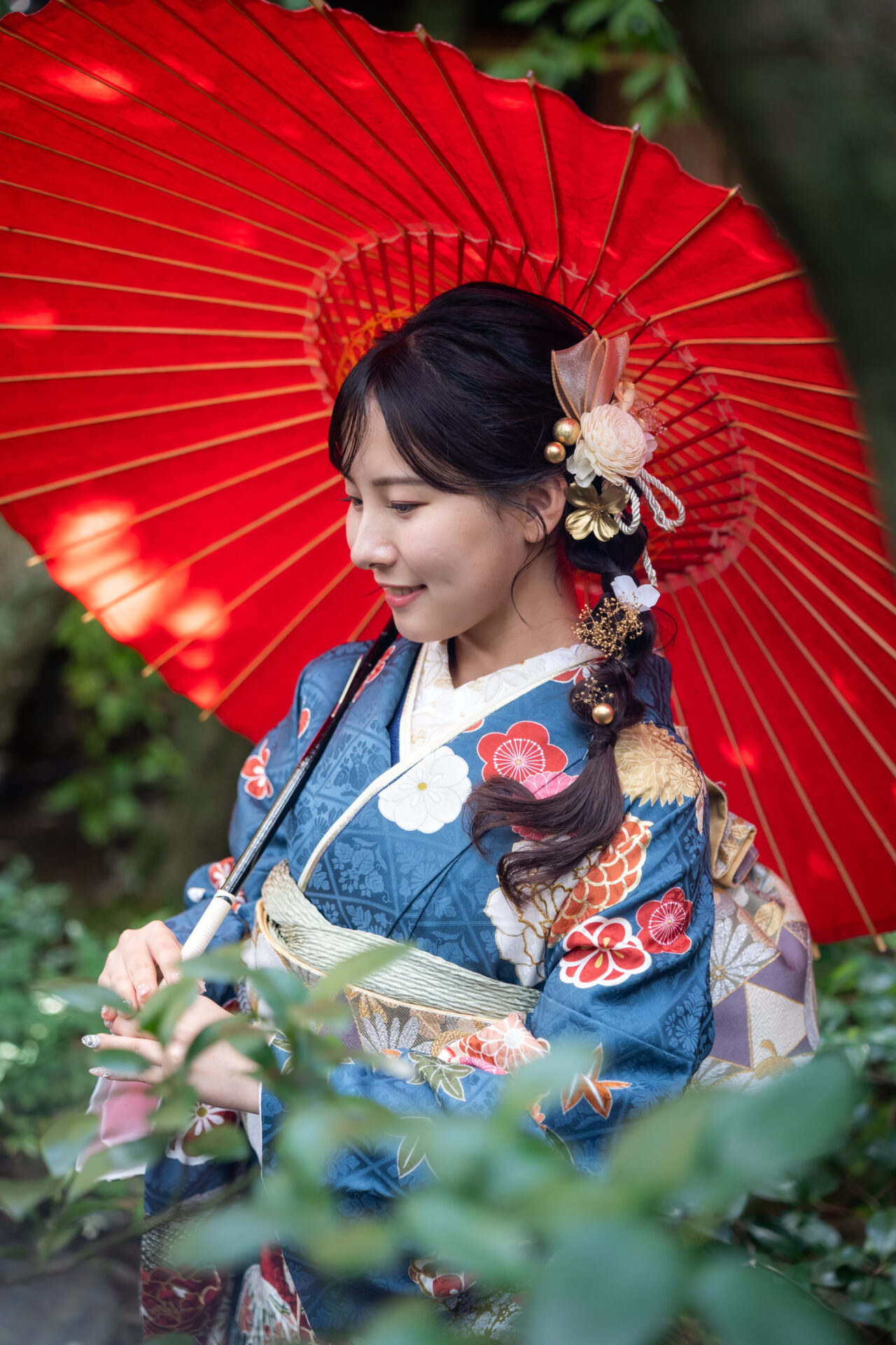 つまみ細工の髪飾りとのコーディネートで、少し大人っぽい雰囲気になりました。